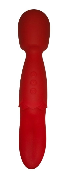 Жезловый, перезаряжаемый вибратор алого цвета для принудительного оргазма.