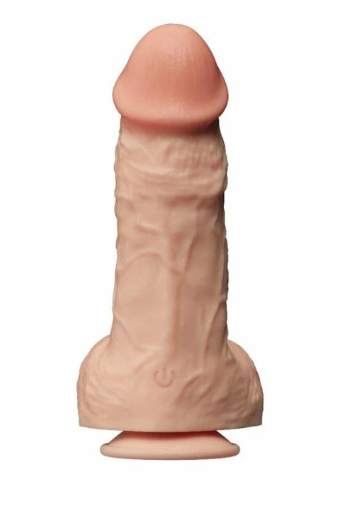 Реалистичный вибратор с мошонкой с поступательными движениями на присоске.