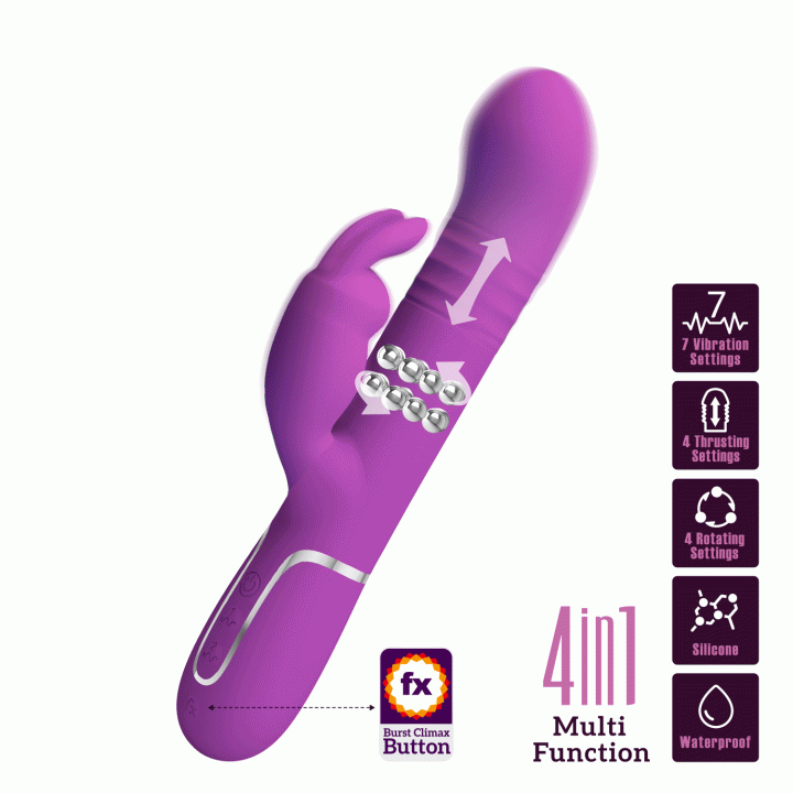 розовый вибратор с клиторальны кроликом, анальной елочкой и вращением в стволе!