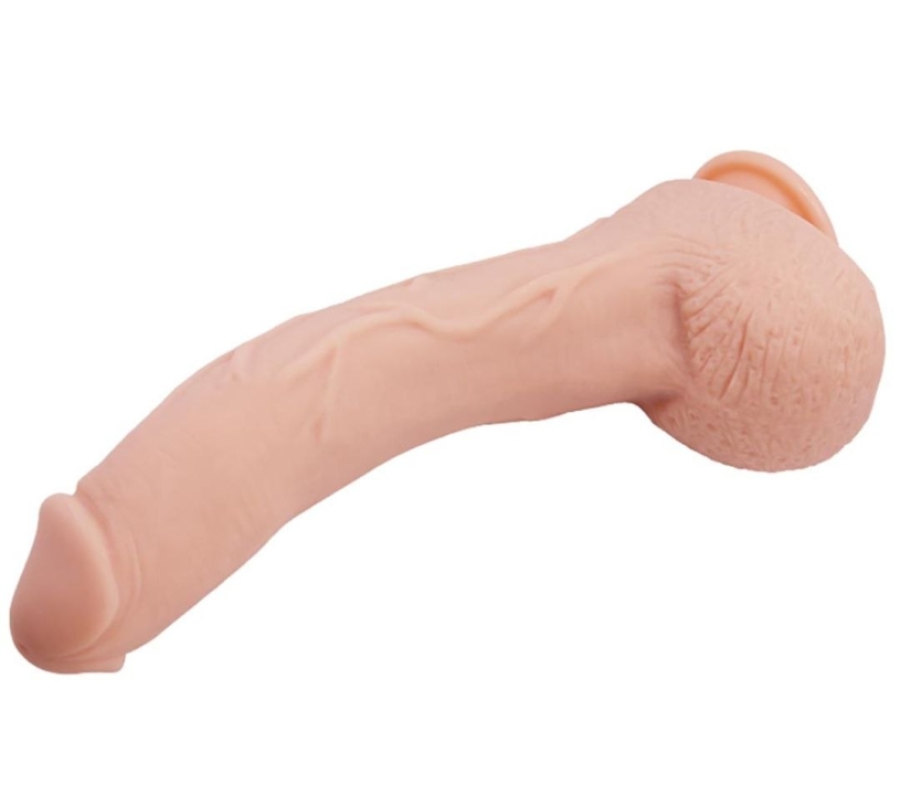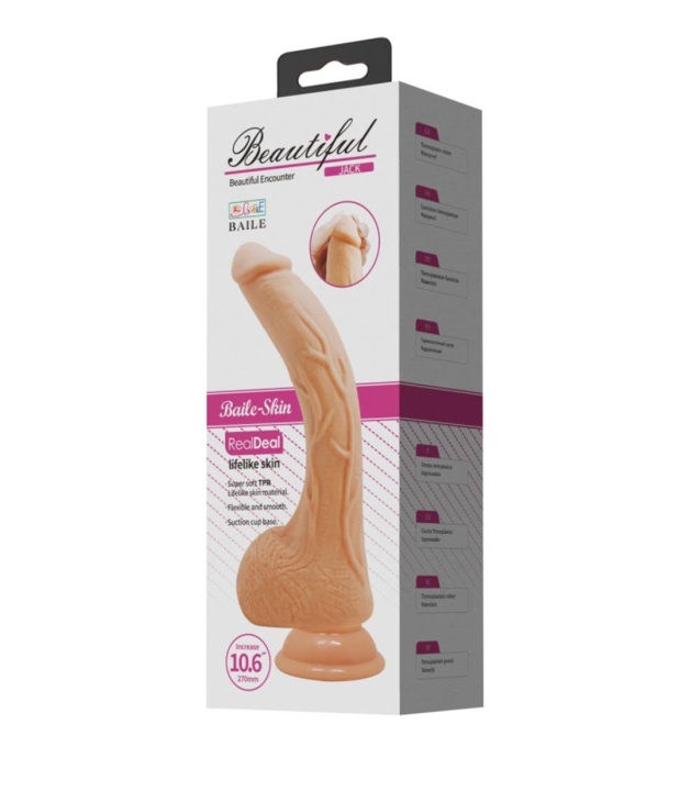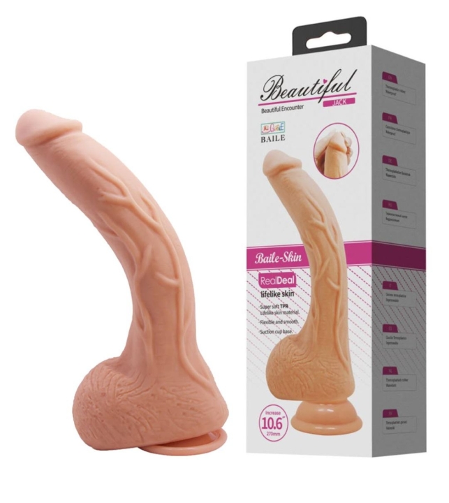 Игрушка выполнена в виде эрегированного мужского члена с высокой степенью анатомической точности. Элегантная головка обеспечивает комфортное проникновение, а объёмные вены и проработанная мошонка с текстурой добавляют реалистичности. Фаллос изготовлен из высококачественного, гипоаллергенного TPR, не содержащего фталатов, что делает его безопасным даже для чувствительной кожи. Материал приятен на ощупь — мягкий и упругий.