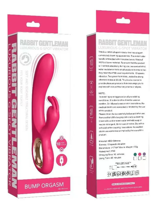 Вибратор "Rabbit Gentleman" с клиторальным стимулятором малиновый