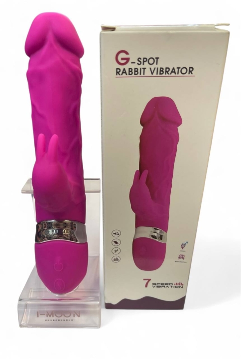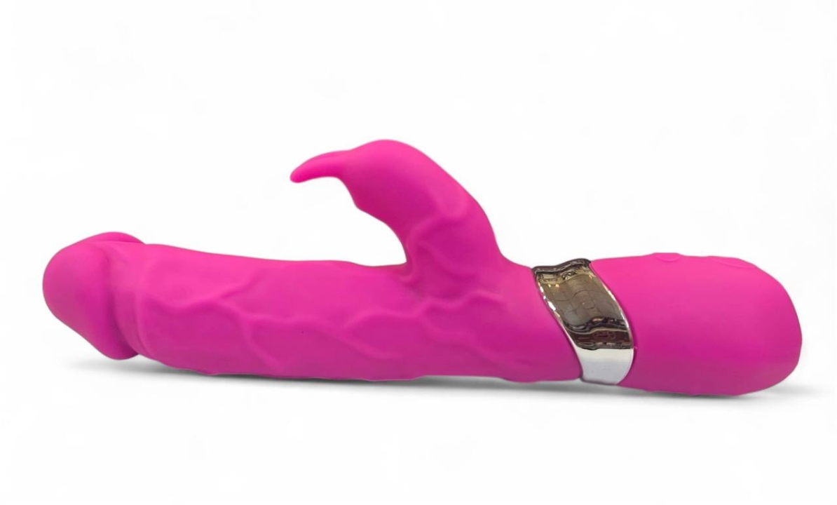 силиконовый розовый вибратор с подогревом, с клиторальным стимулятором .