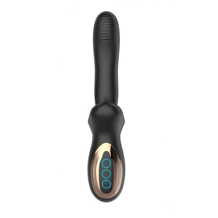 Нереалистичный вибратор с поступательными движениями и стимуляцией клитора и промежности.