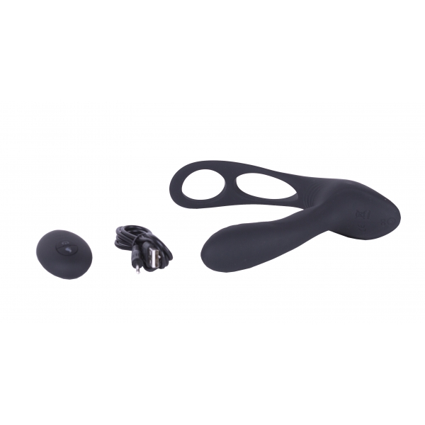 Лаконичный и мощный стимулятор простаты из черного медицинского силикона с двумя независимыми вибромоторами и пультом дистанционного управления.