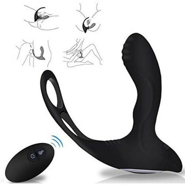 Чёрный перезаряжаемый стимулятор простаты с дистанционным управлением вибрацией.