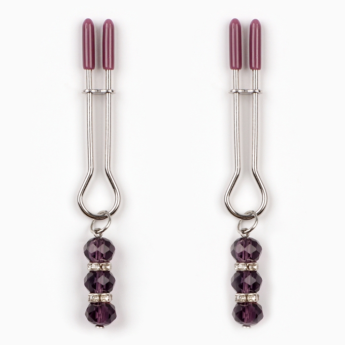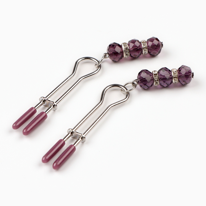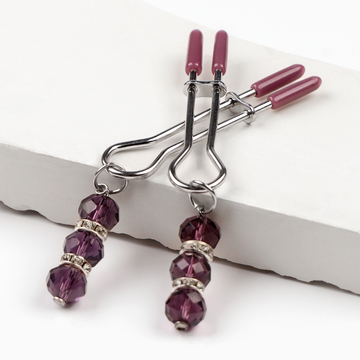 Зажимы для сосков с фиолетовыми бусинами.