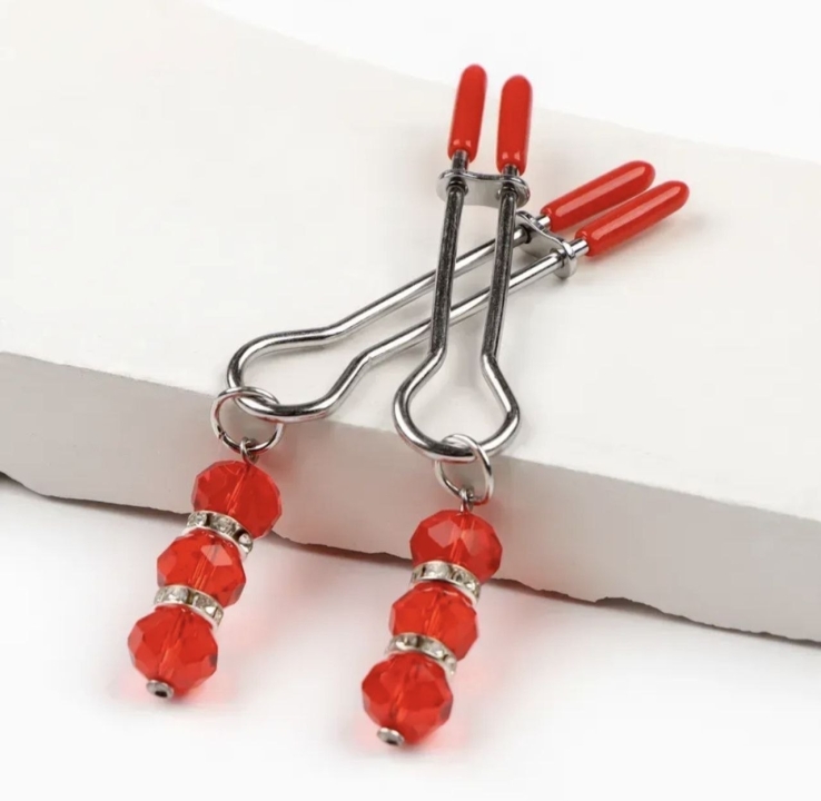 зажимы для сосков и клитора на цепи, с красными наконечниками